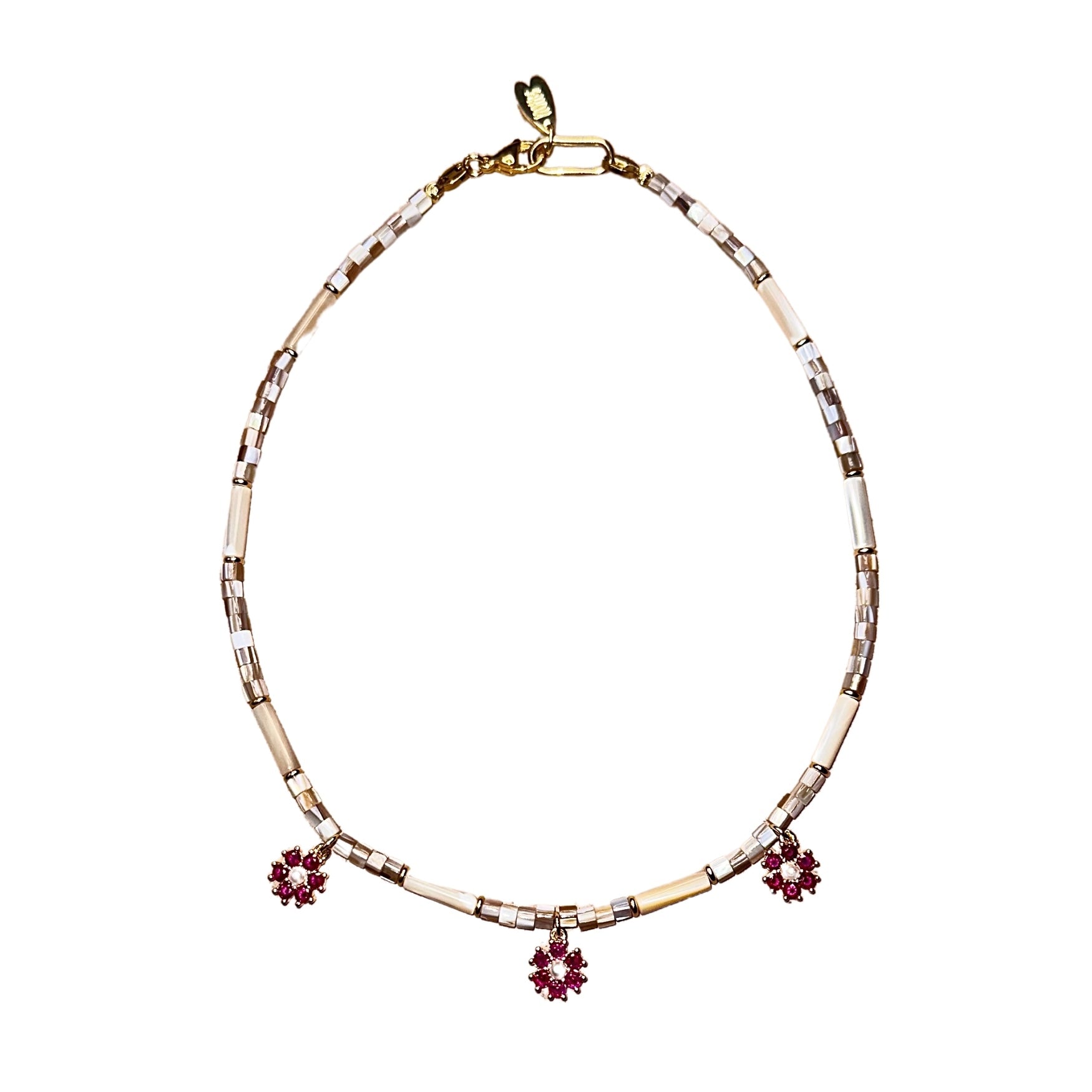 Mother of Pearl, Gold Plated Beads, Cubic Zirconia and Thick Gold Plated Clasp