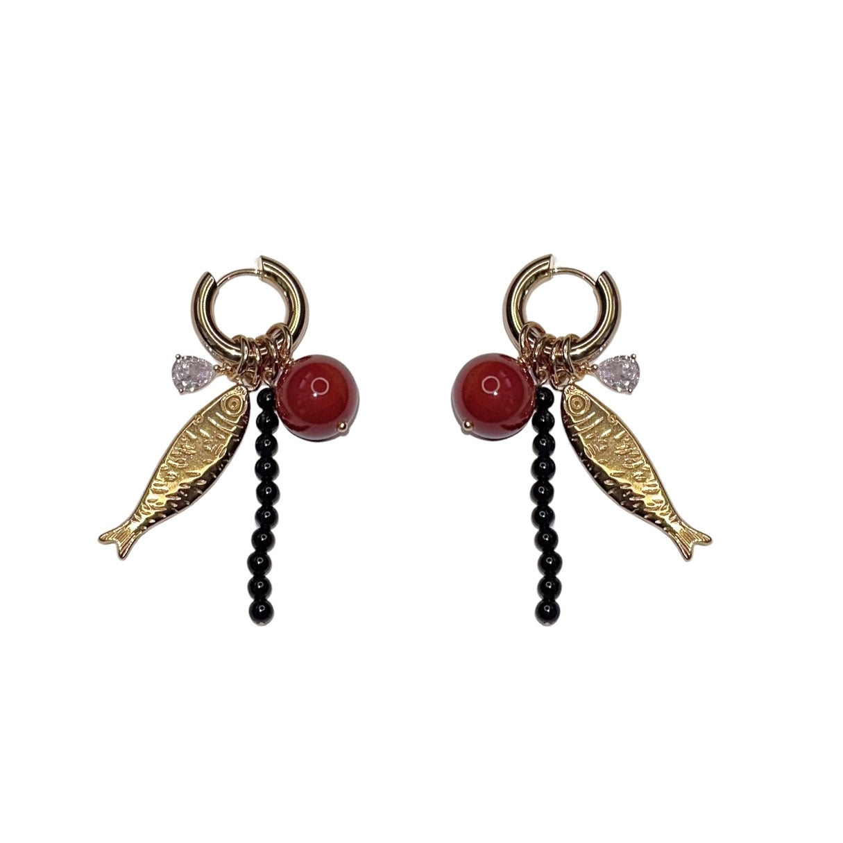 Gold Plated Brass, Cubic Zirconia, Natural Carnelian and Thick Gold Plated Hypoallergenic Stainless Steel Hoops