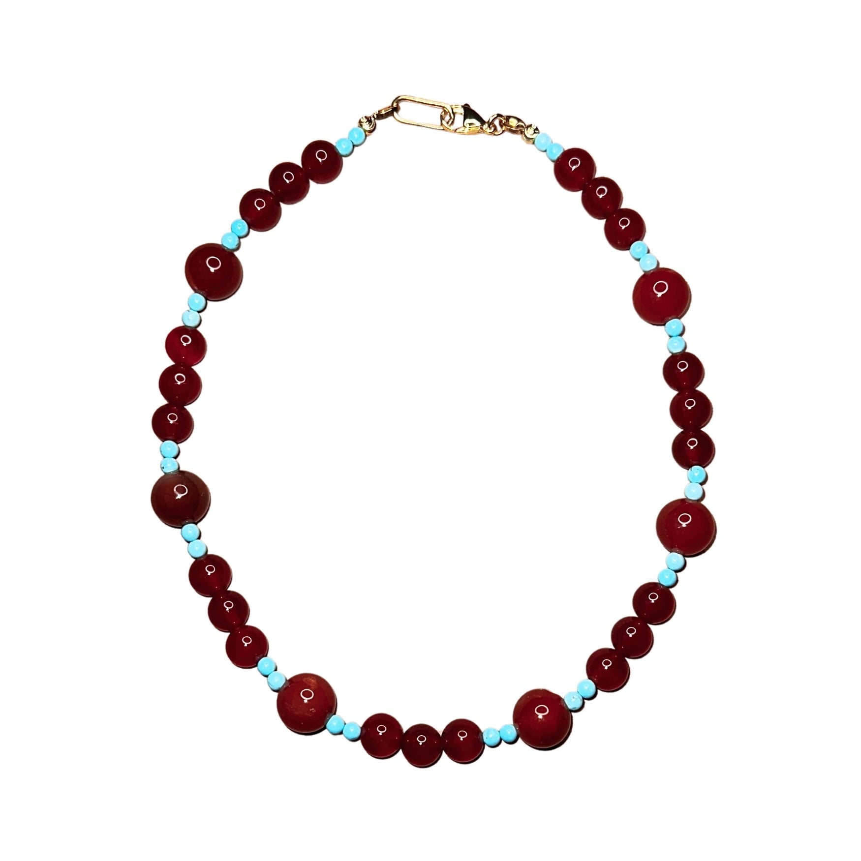 Red Carnelian, Turquoise and Thick Gold Plated Clasp