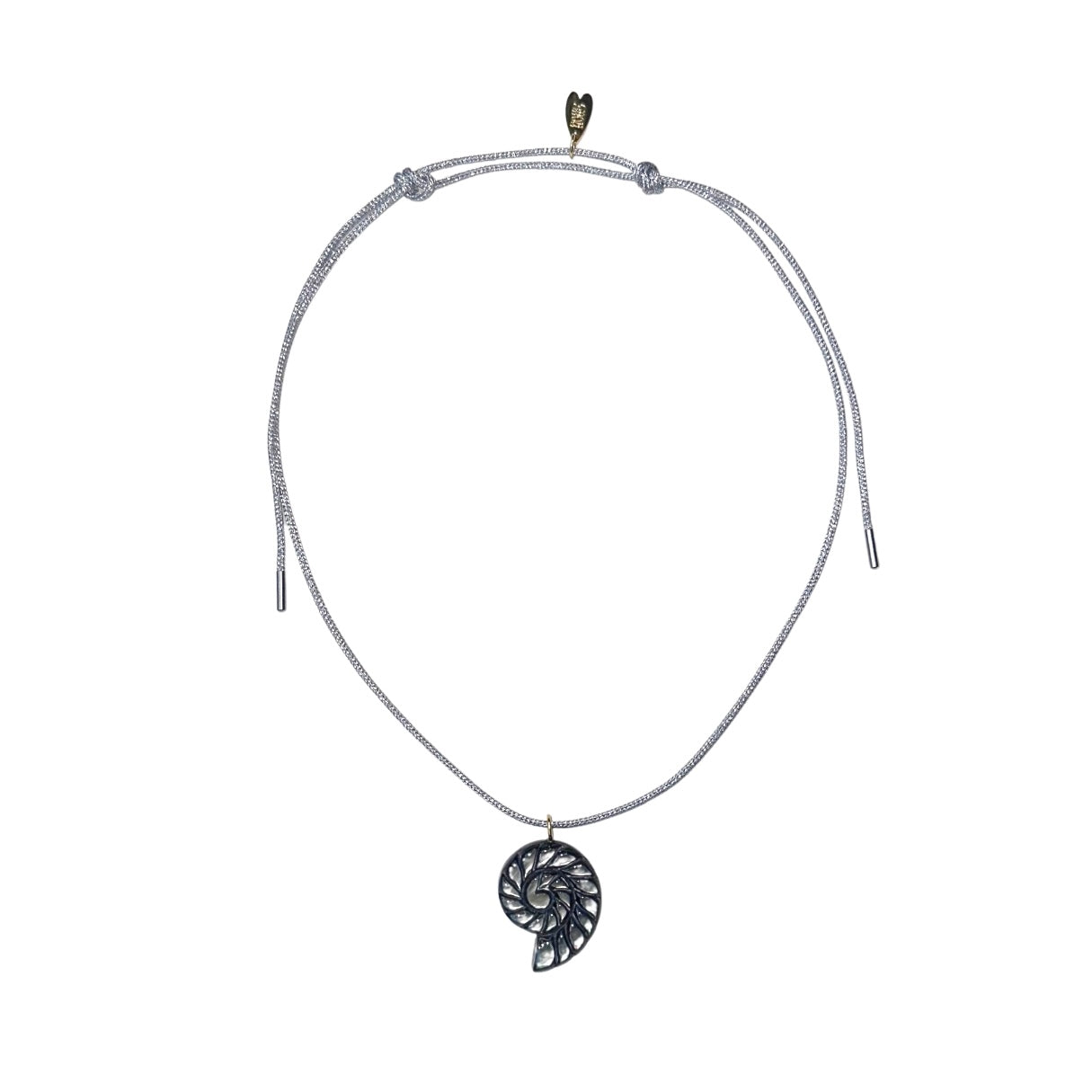 Metallic Woven Adjustable Cord with Black Mother of Pearl