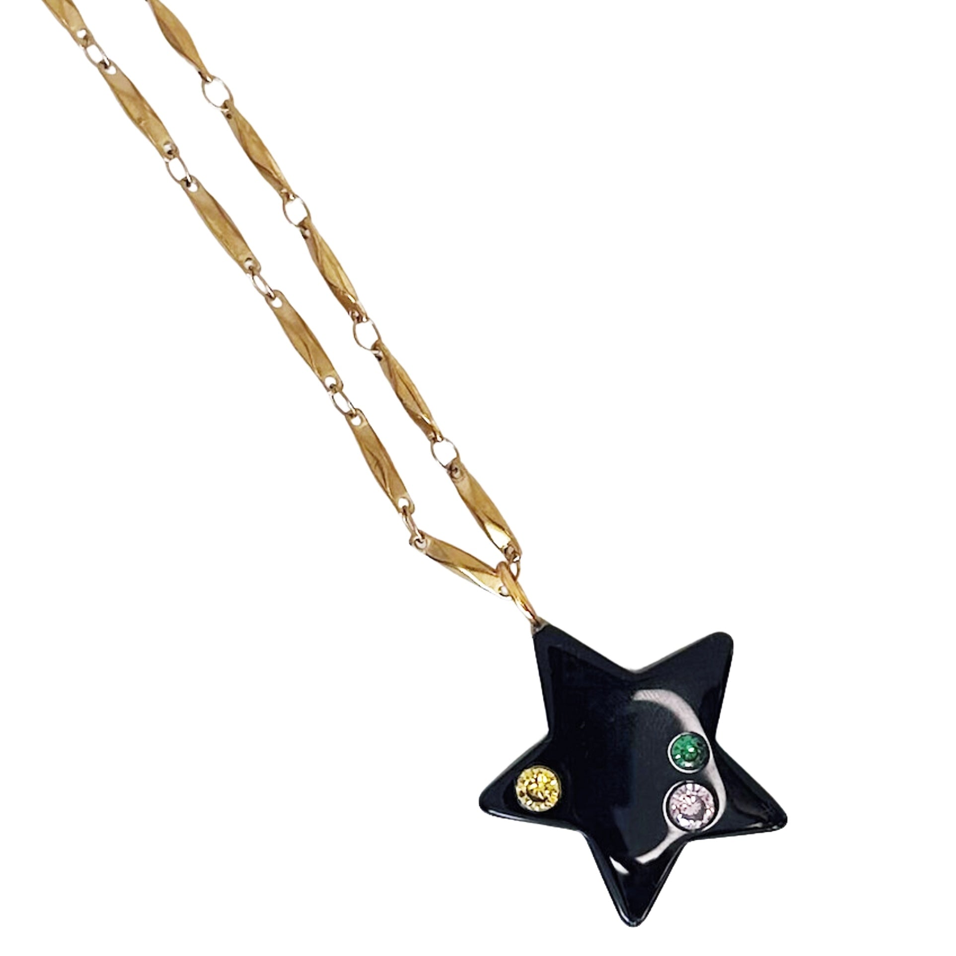 Onyx, Cubic Zirconia, Thick Gold Plated Stainless Steel Hypoallergenic Chain