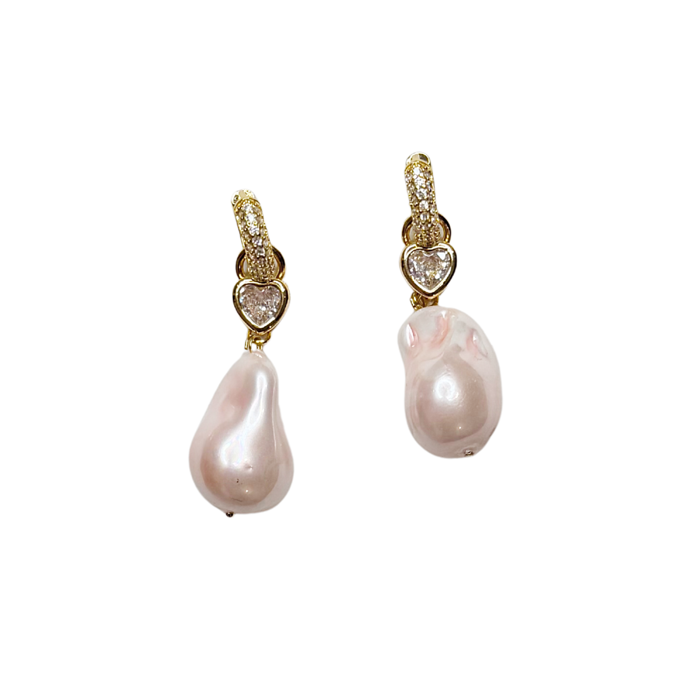 Thick gold plated brass, cubic zirconia and glazed glass pearls.