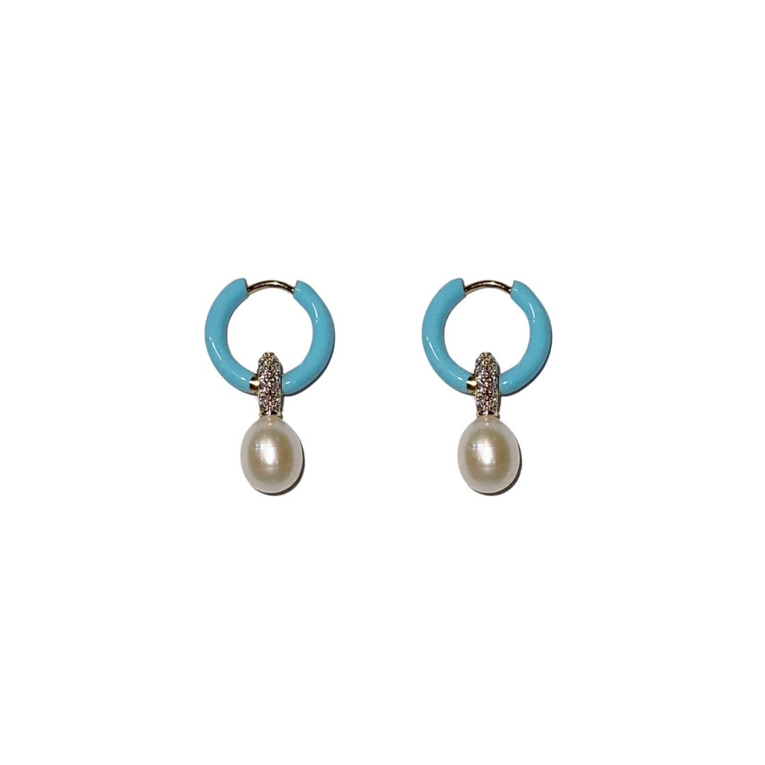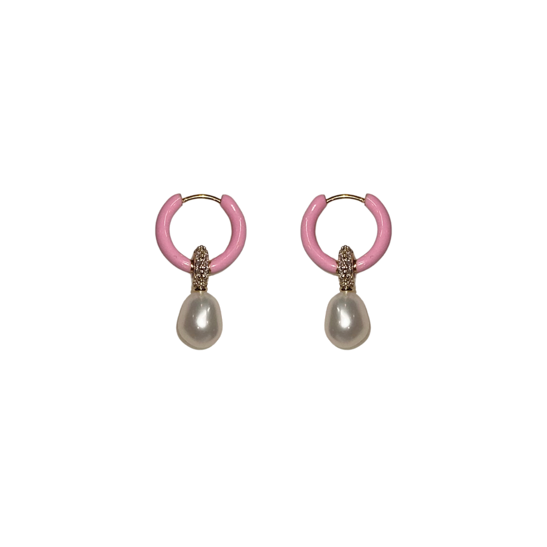 Freshwater pearls, thick gold plated enameled hypoallergenic stainless steel hoops.