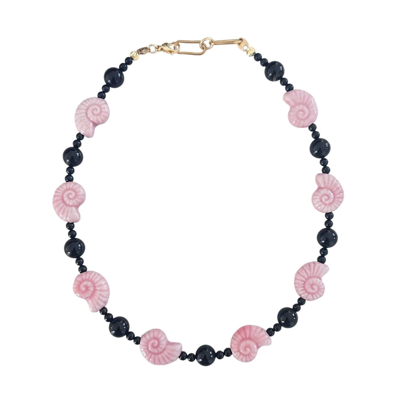Ceramic, Natural Onyx and Thick Gold Plated Clasp