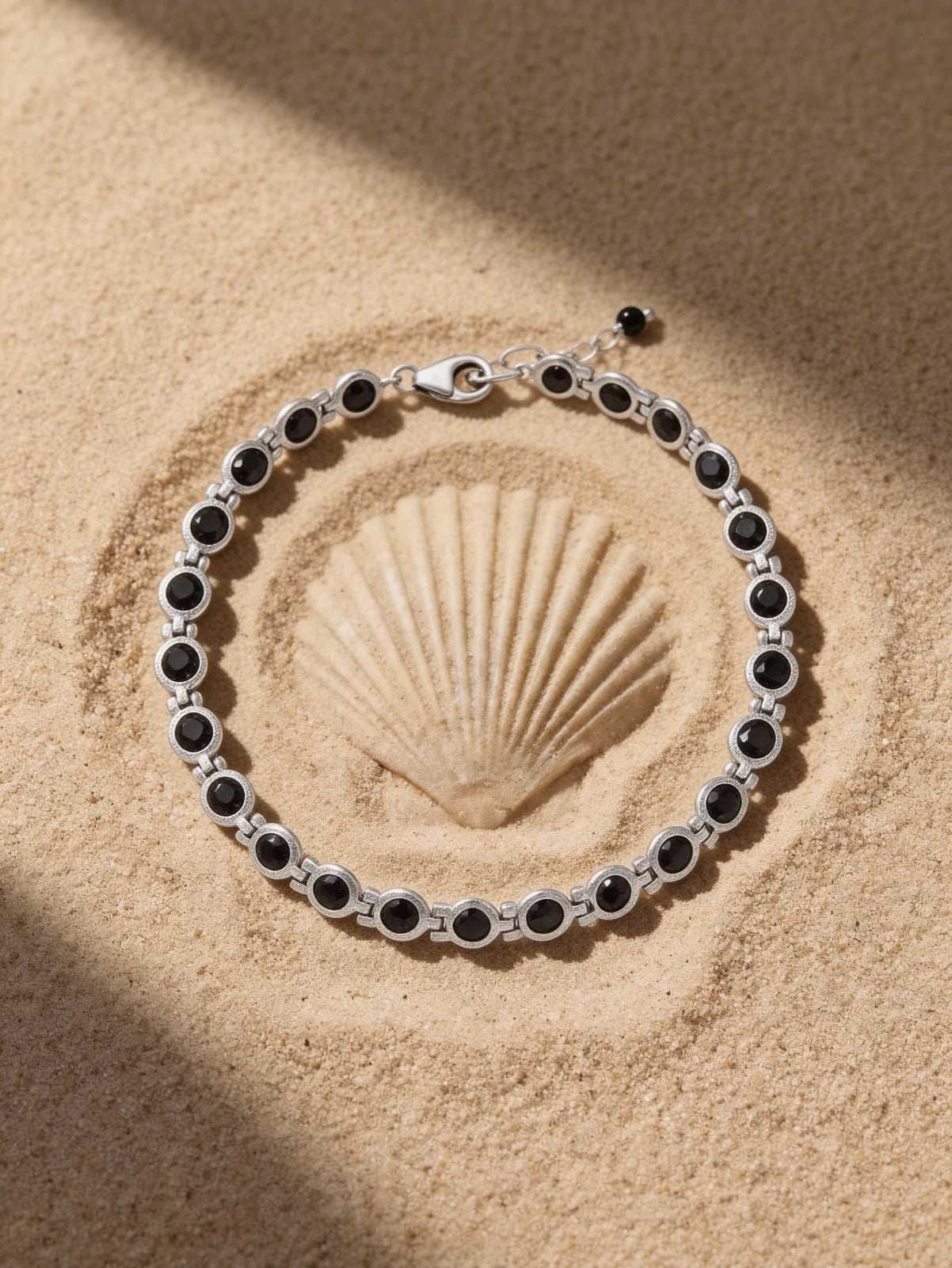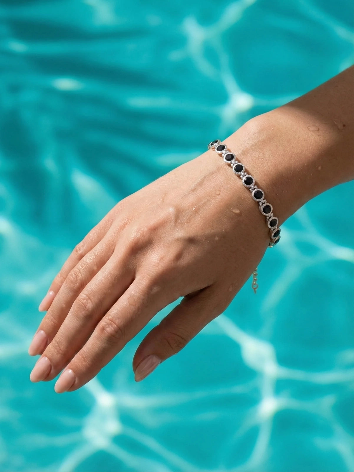 Sea Blub Black Bracelet Sleek black bracelet with oceanic charm. Hand finished detailing captures the essence of luxury resort wear. Perfect layering piece for any wrist stack or standalone statement. Pairs perfectly with our swimwear and co ord collections for a cohesive, elevated look.