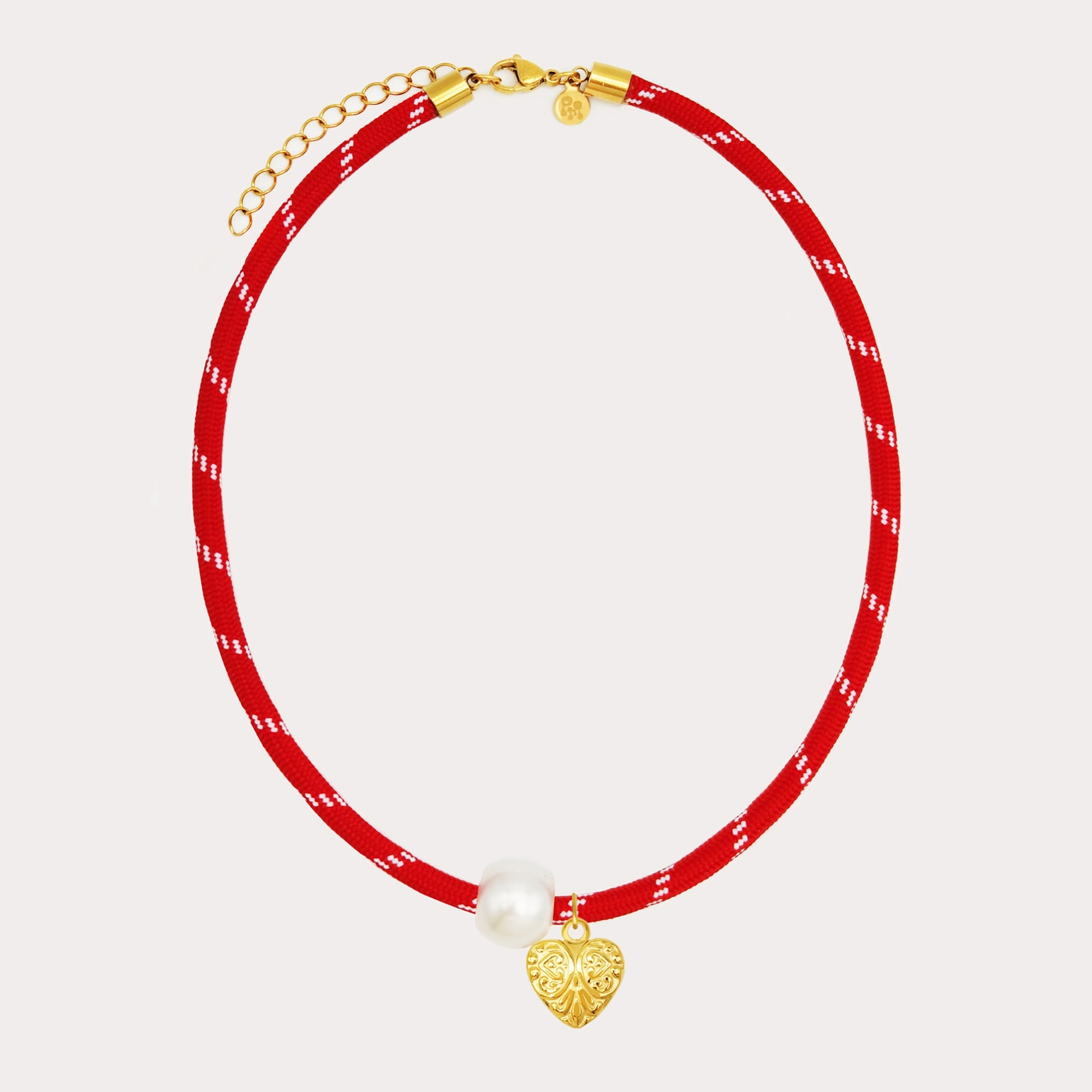 Petit Moments - Paracord Capsule - Heart Pearl Charm Paracord Necklace - Red