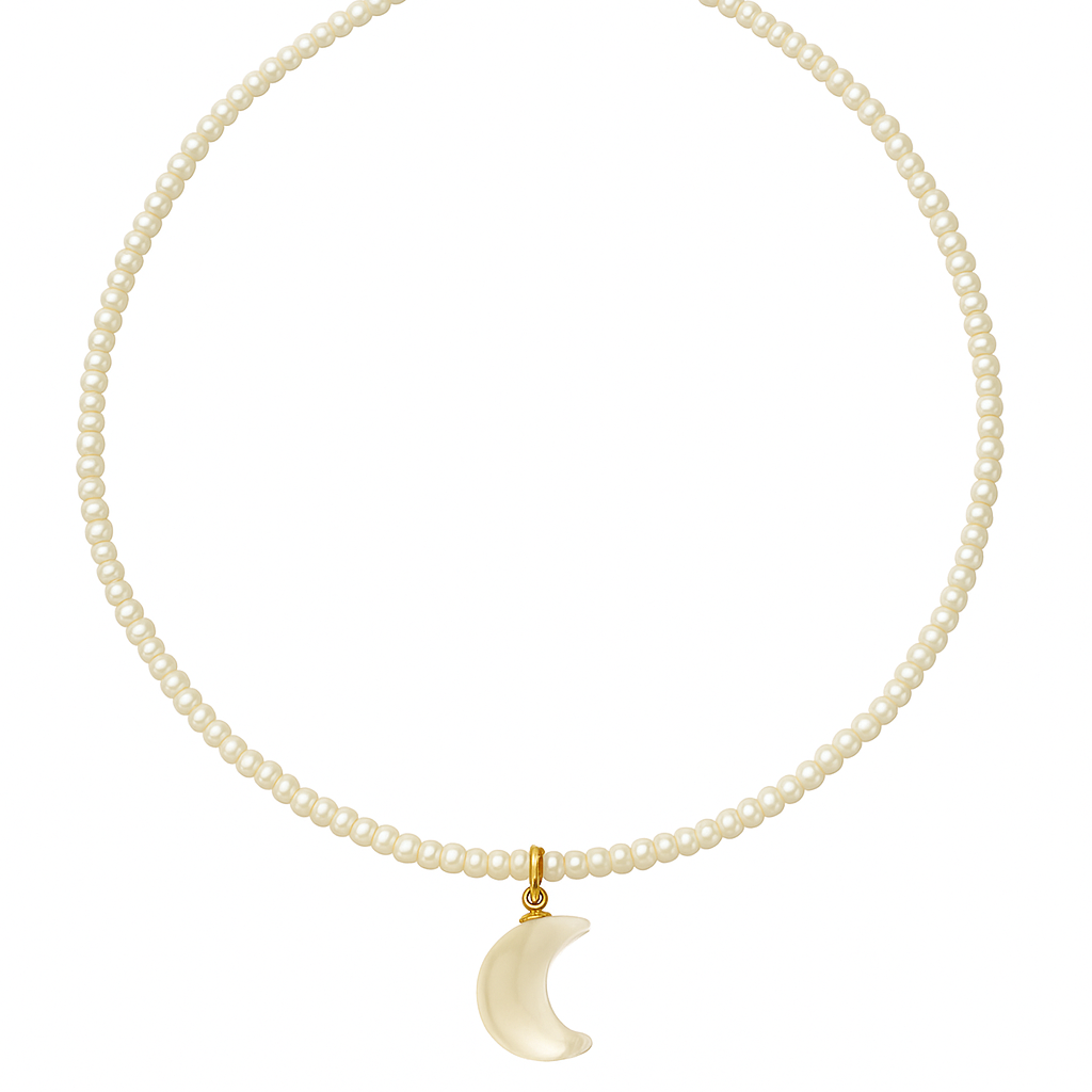 Glass beads, freshwater pearls and 18k gold plated extension chain.