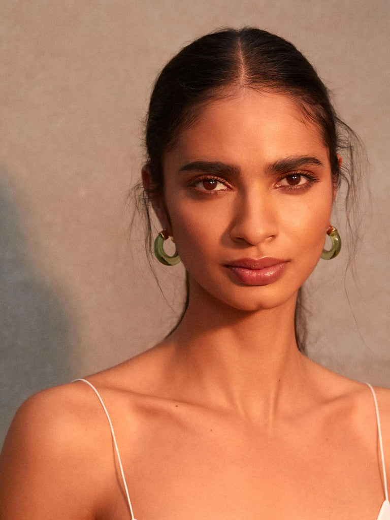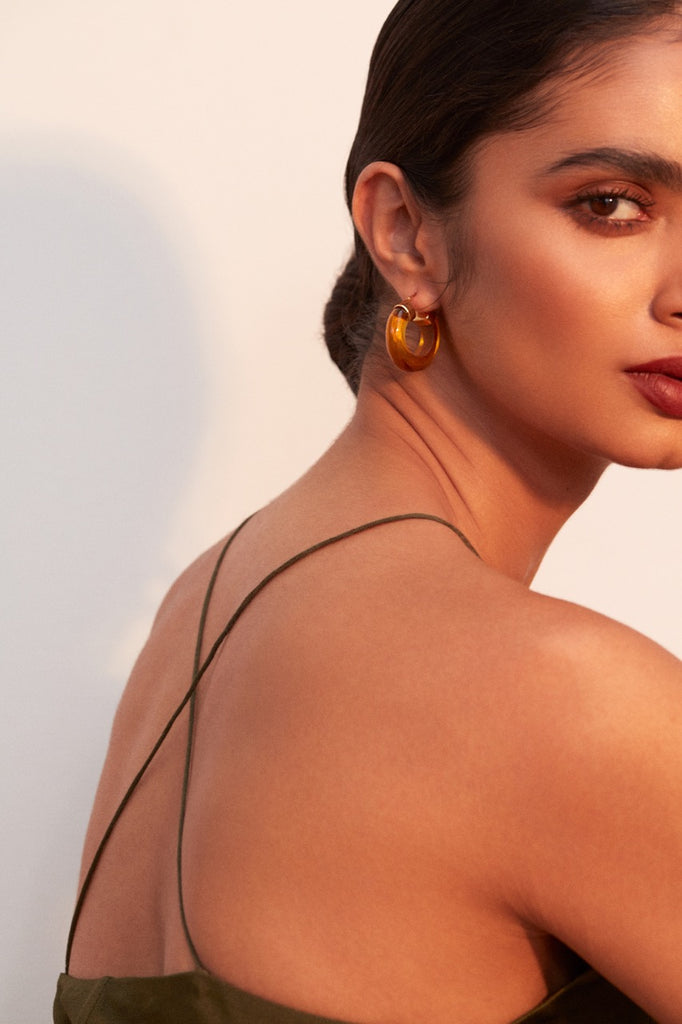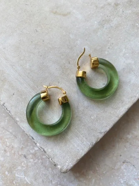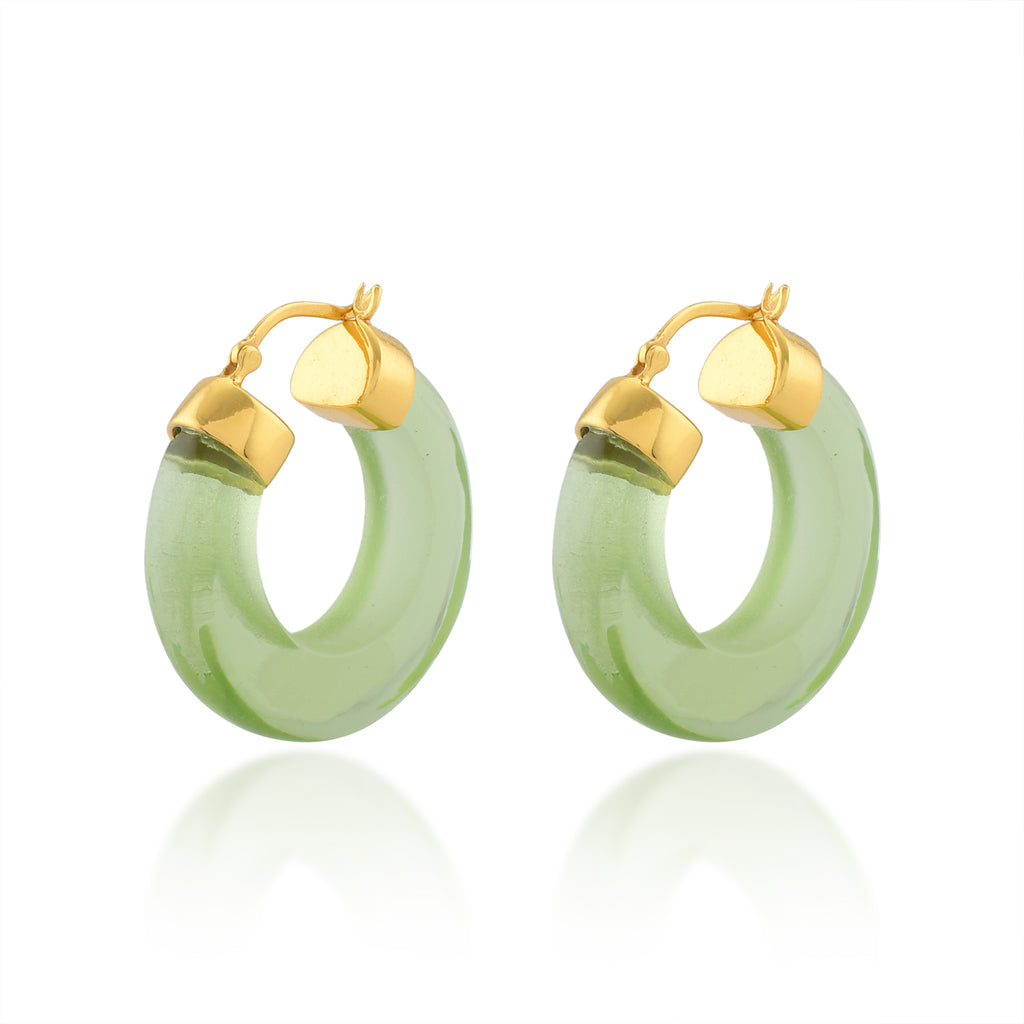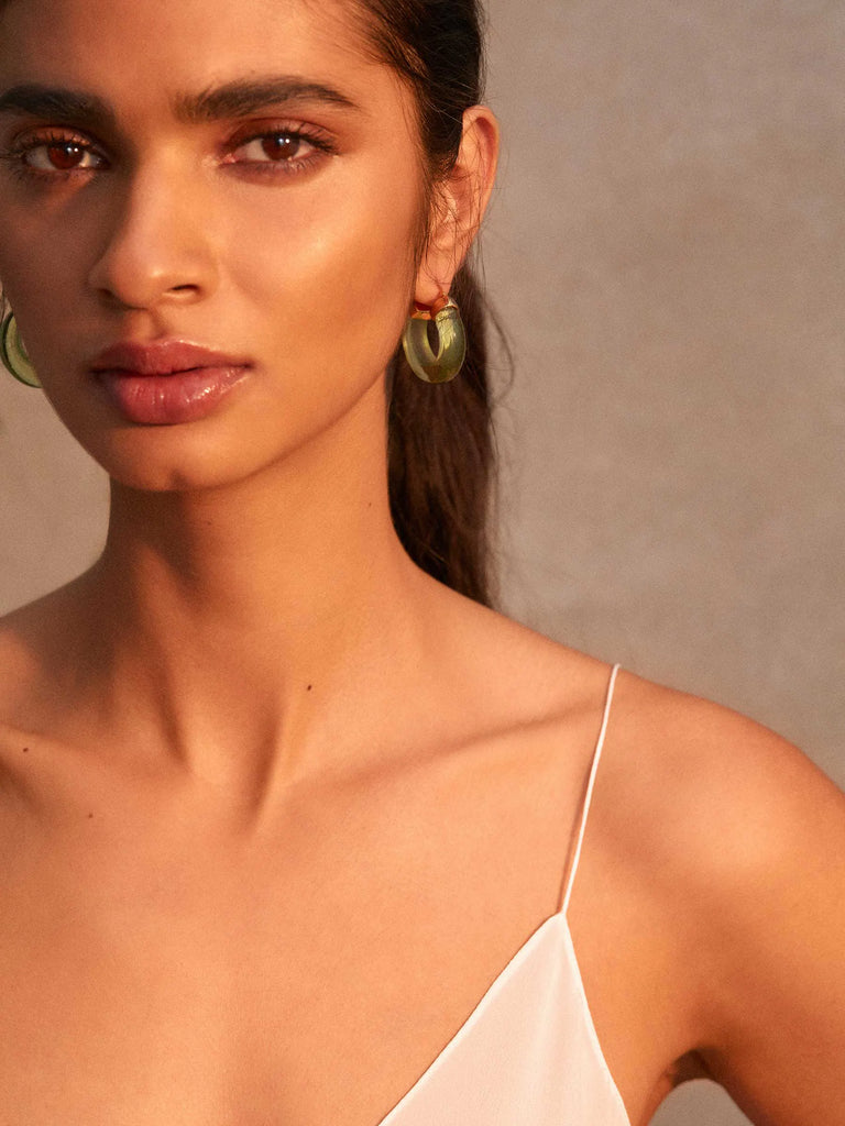 The Aura Hoops are an elegant and stylish way to add a subtle colour pop to you outfits. They are feminine and soft and lightweight, making theme easy to wear from day time through to the evening. The hoops measure 2.5 cm top to bottom making it the perfect length and width. They come in a selection of equally stunning signature colours including; Soft Green, Crystal Clear, Citrine and Turquoise.