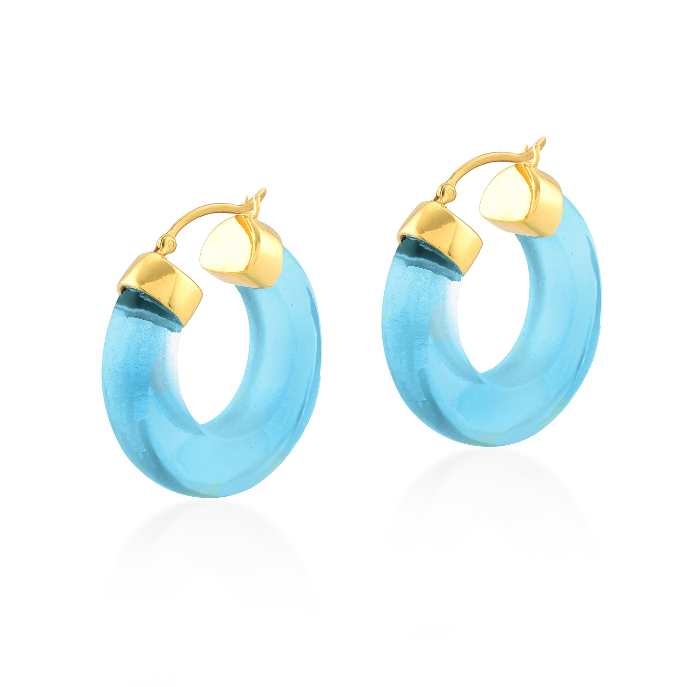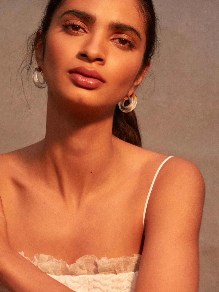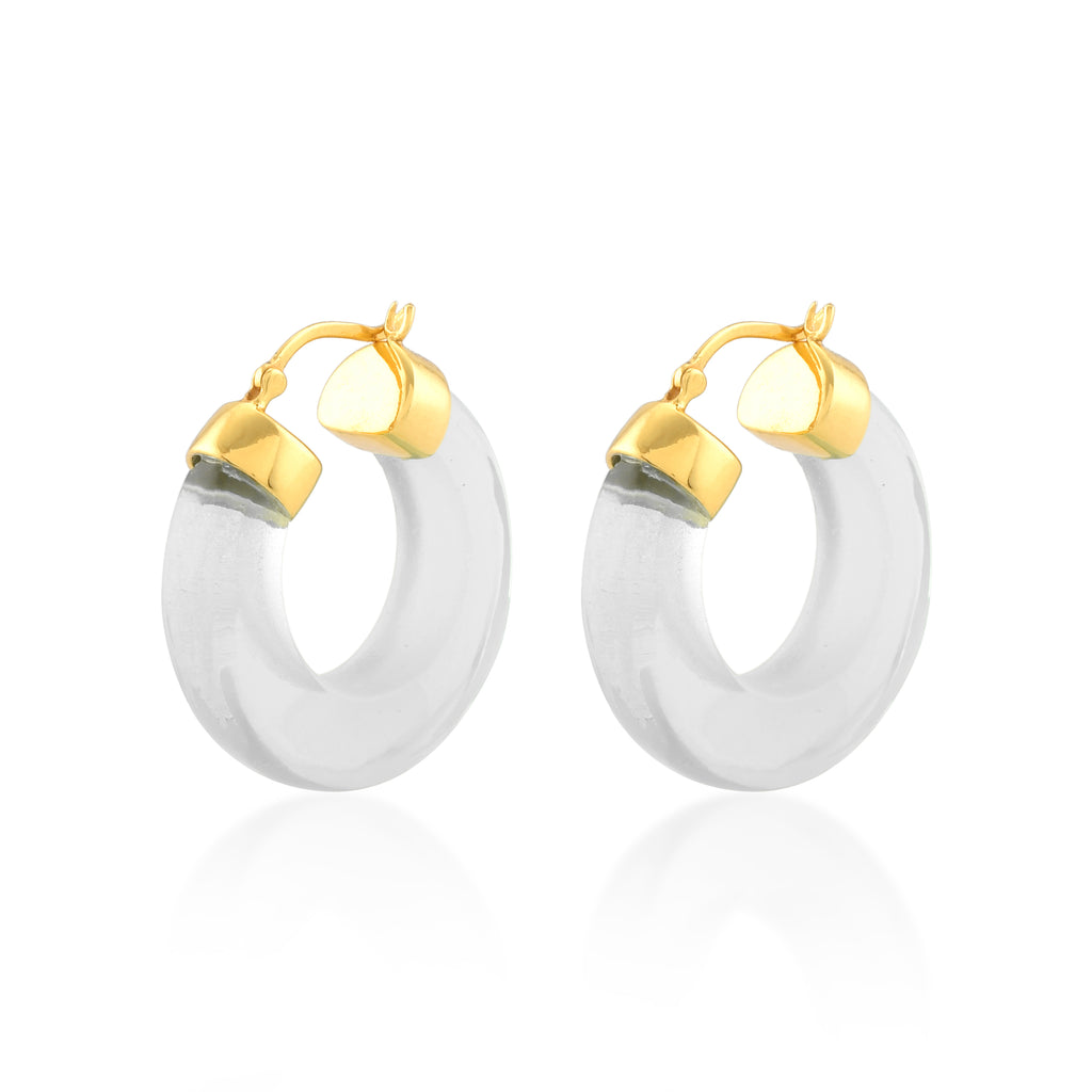 The Aura Hoops are an elegant and stylish way to add a subtle colour pop to you outfits. They are feminine and soft and lightweight, making theme easy to wear from day time through to the evening. The hoops measure 2.5 cm top to bottom making it the perfect length and width. They come in a selection of equally stunning signature colours including; Soft Green, Crystal Clear, Citrine and Turquoise.