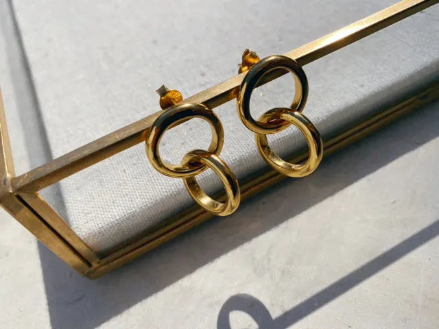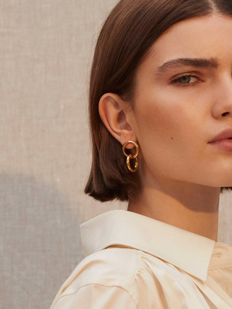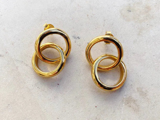 The Celestine double intertwined hoops are the ultimate everyday gold earring. Measuring 2cm top to bottom they are elegant, understated and feminine all in one. They instantly elevate all your day outfits in an easy manner. They will quickly become your go to earrings for all occasions.
