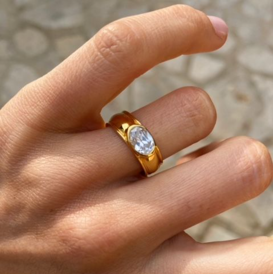 We thrilled to showcase our new Juniper ring. This ring is formed of thick high shine gold band with an oval shaped stone. Available in in Crystal Clear, Ruby Red and Emerald Green, this is timeless statement ring. Designed to stack or to be worn by itself. Simple elegance at its best.