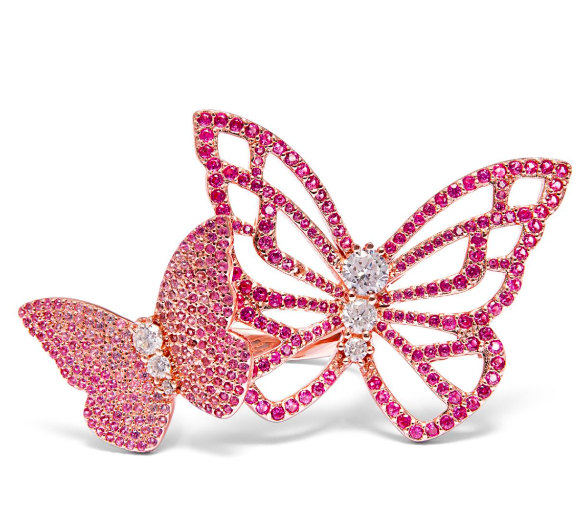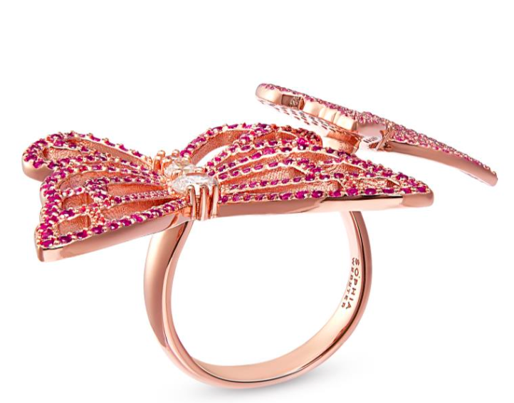 Sophia Webster - JSS26025 SPARKLE ON PAPILLON STATEMENT RING - 18K ROSE GOLD CERISE
