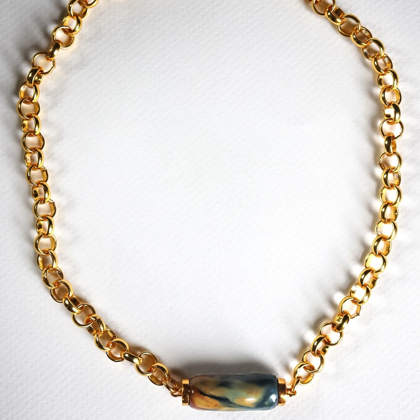 22k Gold Plated pendant with handmade porcelain stone.